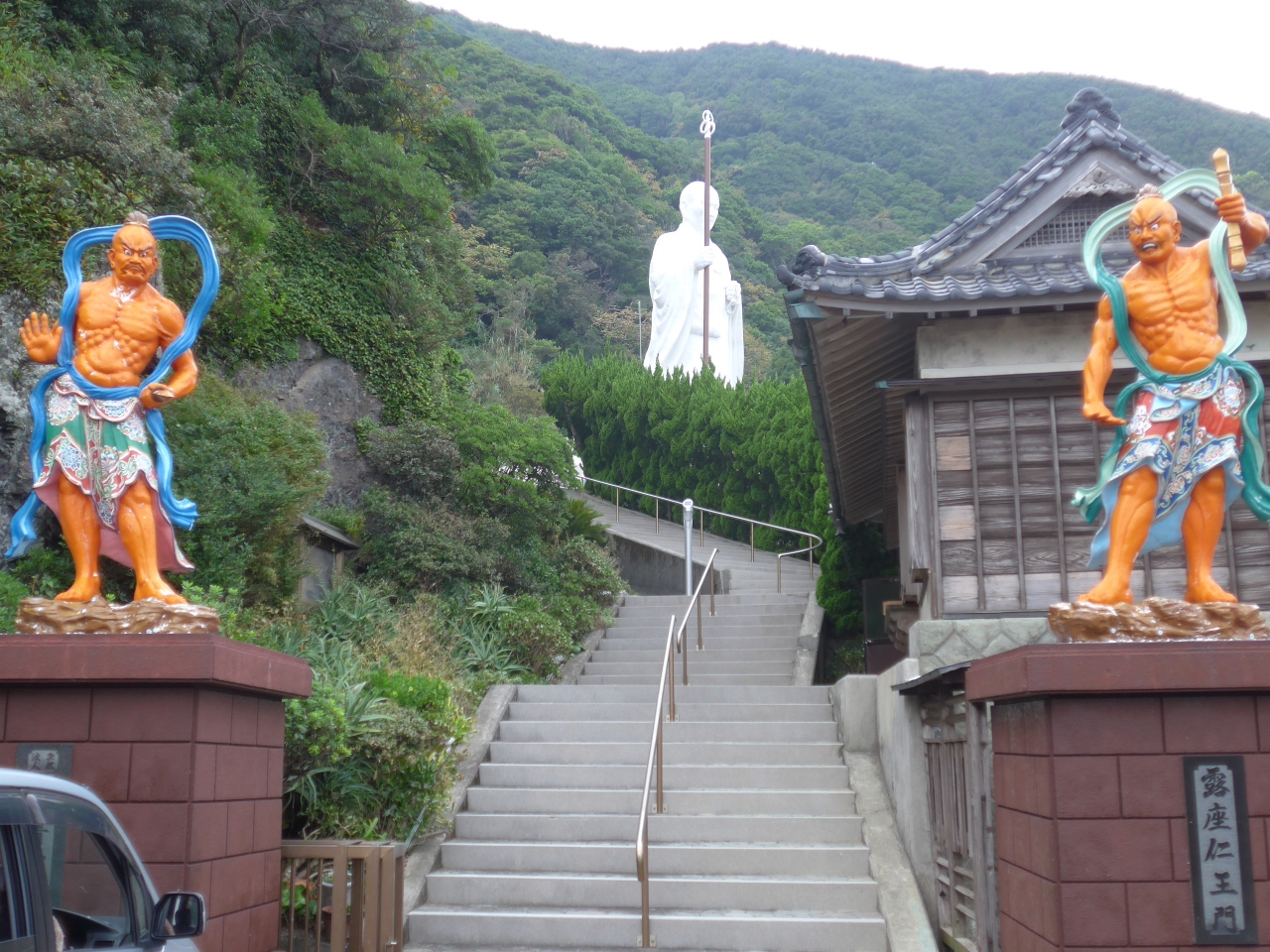 一度見てみてはとのお奨めで少し足を伸ばし室戸岬より少し先の海岸線を進んでいくと大きな真っ白な弘法大師の像がありました。