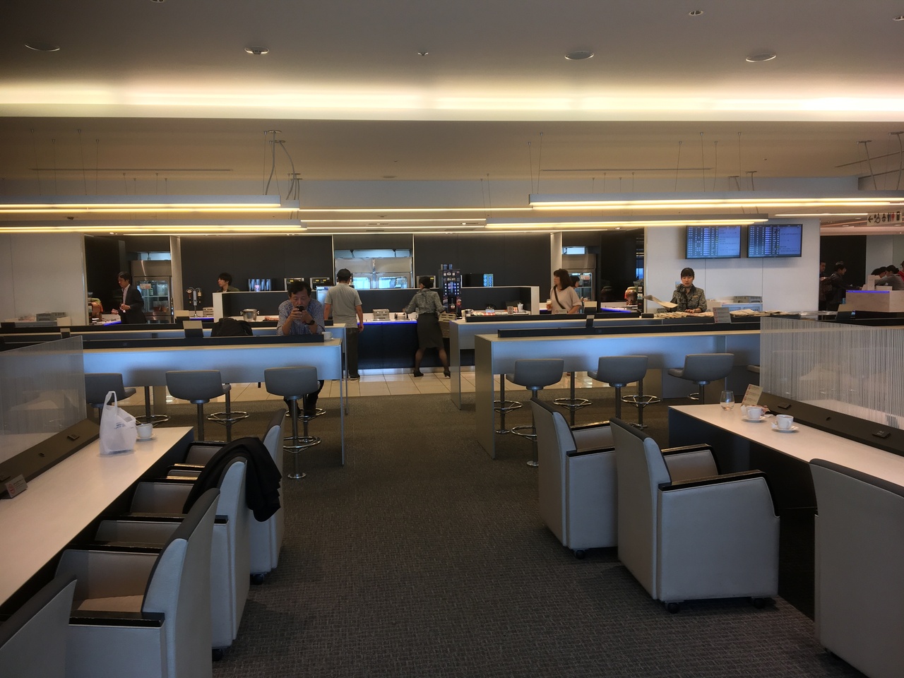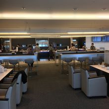 羽田空港国内線の制限区域に入ってすぐのところにあるラウンジです。ビジネス客が多く、滞在時間も短い人が多いように感じます。ひとり席が多く、電源も有るので簡単な仕事も可能です。国内線なので、飲み物とおつまみ程度で、軽食はありません。
