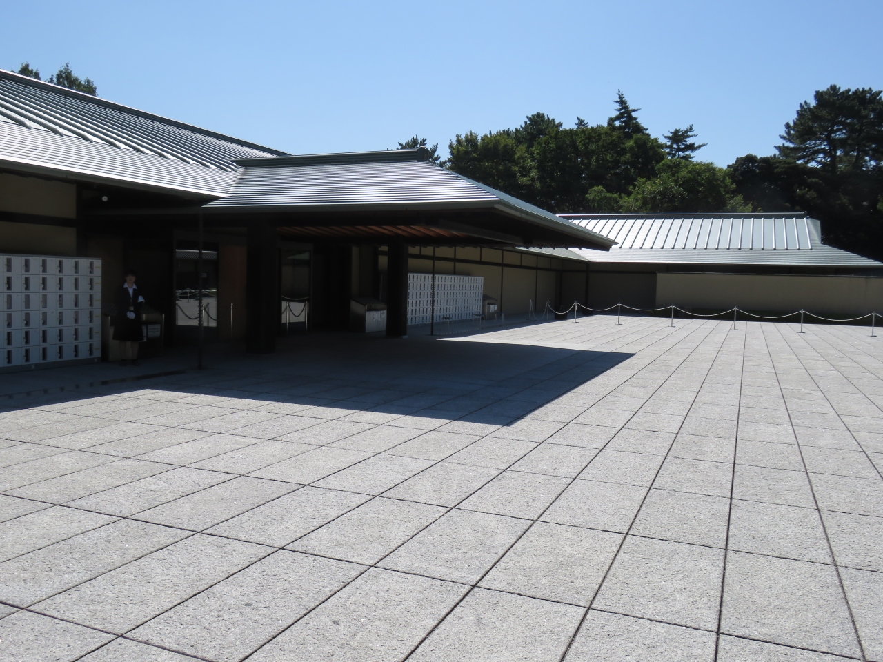 京都滞在最終日に京都御所の一角の仙洞御所に入れるかもと思い、清和院御門のところまで来ると、なんと、看板に迎賓館の公開日という文字が見えた。さっそく、まず、新しい迎賓館のほうも見たくなり、そちらの会場にまじ移動する。タイミングよく、当日が予約で満員でない場合は、空いた人数だけ当日入場可能のようで、私も並んでみた。で、ちゃんと入れることになる!これはラッキーだ。入場料は一人1500円とのこと。この際、仕方ない。国立の施設にしては、珍しいのだが、現役の迎賓館であるだけに、外国の賓客が宿泊されるときなどは、入場不可能にきまっており、当然、この機会を逃すべきではないと判断。