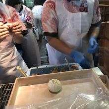ANA側の南ターミナルの1番端にある有名な551蓬莱さん。テイクアウトにはお弁当もあります。混んでいますがイートインは 比較的空いています。メニューの種類がとても少ないですが、豚まん170円やシュウマイ170円だけを中で食べる事も可能ですがAせっとの海鮮焼きそばと豚まんのセット1140円が人気です。