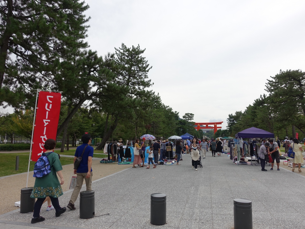 平安神宮のすぐ南にある市民公園です。訪れた時はフリーマーケットが行われており、地元の人たちでにぎわっていました。