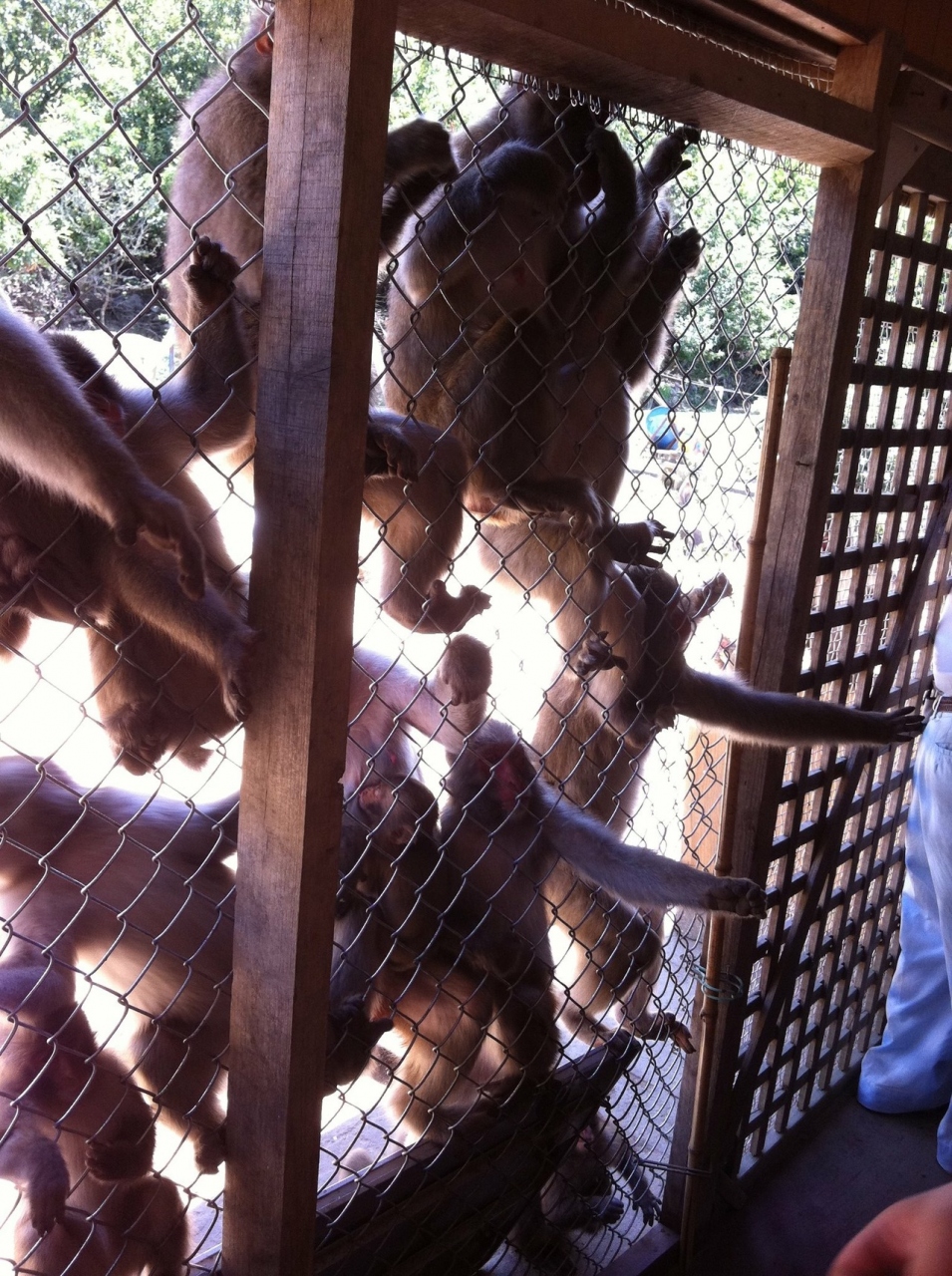 寒霞渓へ向かう途中にあります銚子渓。500頭のお猿さんが2頭のボスの群れに分かれてくらしているそうです。数年に一度ボスの交代式はニュースになる程。ちゃきちゃきっとしたおば様に指導を受けたお猿さんのショーは小さいながらも見応えあり。お猿さんへのえさやりタイムでは人間が檻の中に入り外からお猿さんがガッシガシ網越しに餌を奪いに来る感じでちょっと怖かったです。