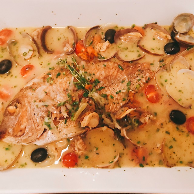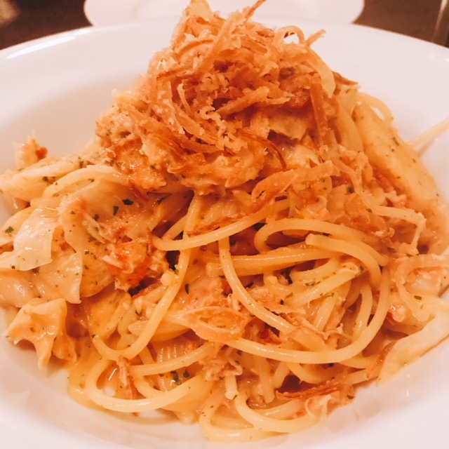 ズワイガニとキャベツのトマトクリームソースパスタも見た目は質素ですが美味しかった!真鯛のアクアパッツァも丸ごとの真鯛で食べごたえがありました。