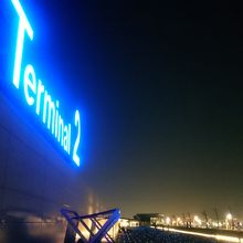 羽田空港第2ターミナル屋上は、広くて開放的な展望デッキになっています。中央部は屋内で広いガラス張りになっているので雨でも心配ありません。ベンチもあってくつろげます。海側のC滑走路に面しているので、ANA機が中心です。夜はLEDが綺麗で、遠くにディズニーの花火も見えました。