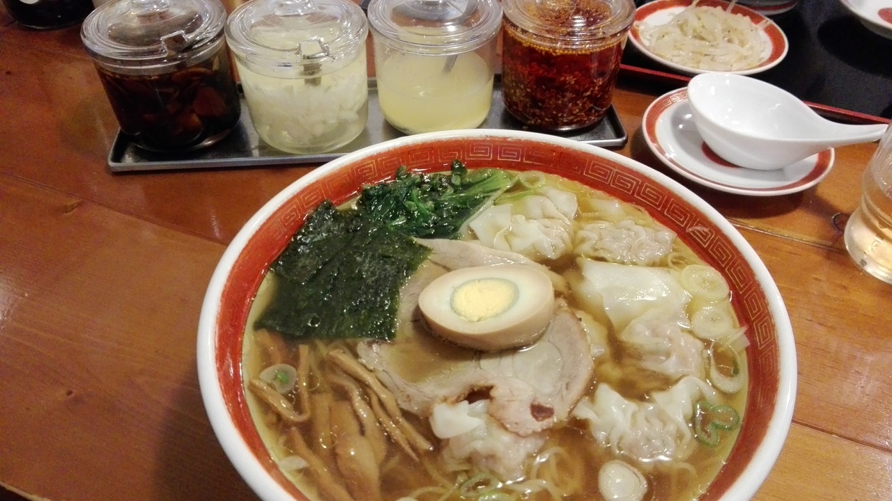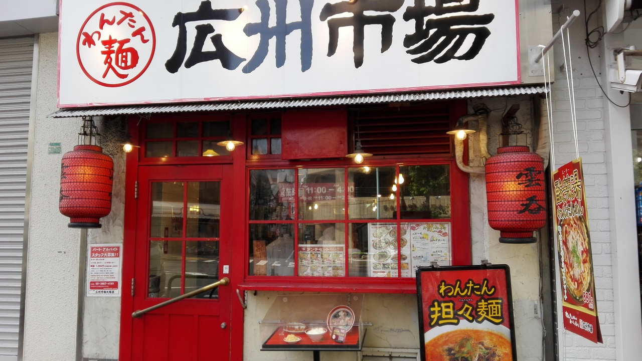 とろっとしたワンタンをたまに食べたくなります。広州市場はチェーン店ですが。新宿に複数、あと、店の場所が限られます。山手線北半分内ではここだけ。山手線大塚駅を山手線内側へ、数分の場所です。いつも人気で、店内に座って待っています。1階にも2階の階段にも待つ用の椅子があります。ワンタンは具材がしっかり味がついていて外側もトロッと美味しいです。が、ワンタン入り麺にするとワンタンを食べていたら麺がふやけてしまう。。大急ぎで食べなきゃ、です。麺なしワンタンスープとおかず、がよいです。ワンタンのたれ、スパイスが種類があって楽しめます。