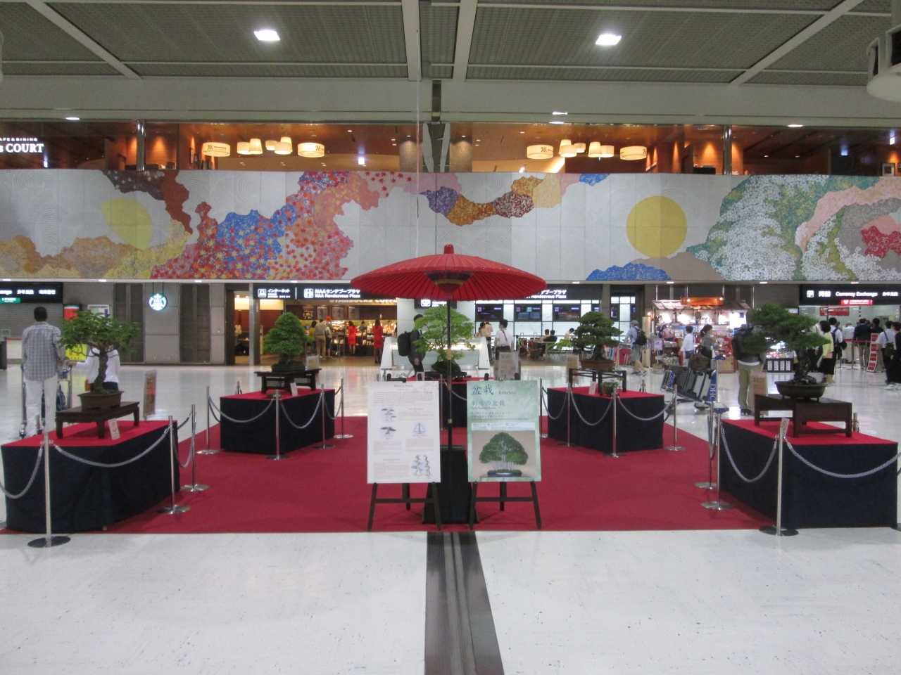 第2ターミナルの出発階に旅行者や成田で乗継時間を過ごす旅行客を対象に「日本のおもてなし」として日本文化紹介イベントを開催しています。5月は新緑が美しい盆栽の展示を行っており、著名な作者と思われる立派な盆栽が置かれていました。