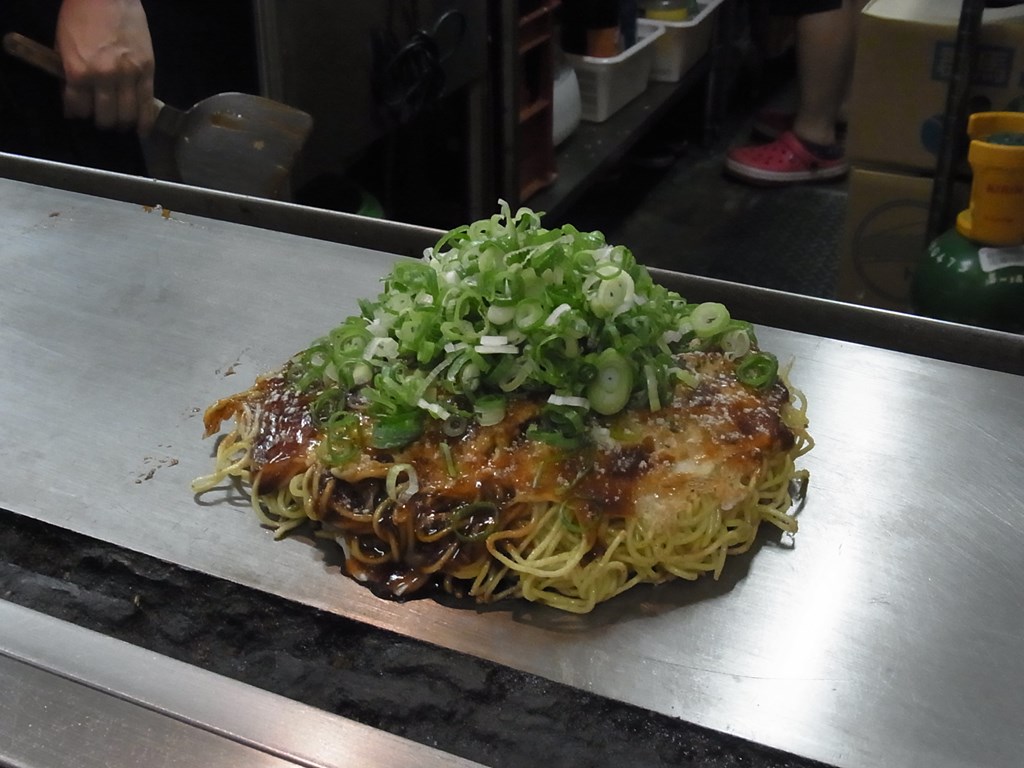 広島駅前のお好み焼き広場にあるお店です。JTBのクーポンでは、ハーフサイズ2枚を食べることができるので、その1店目はここを選びました。細めの焼きそばを硬めに焼くのが特徴だと思います。店内には広島カープの応援グッズがあり、広島に来たんだなという印象を受けました。