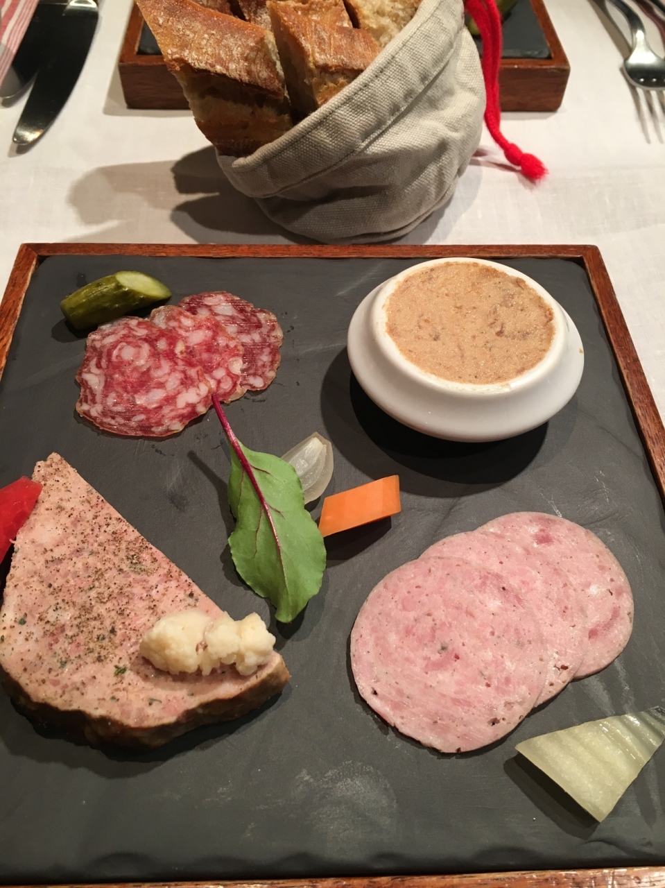 リヨン料理とはこうなのかもしれませんが・・私にはデザートも含め味付けが濃い目できつかった。ディナーで5品のコースを勧められてそれにしましたが、このコースは料理が基本的にフィックスで、選ぶ楽しみがないです。2階席で突然フロア全体が真っ暗になり停電か?と思いきや、別テーブルの団体でバースデーソングとキャンドルケーキ。完全にこちらの会話は遮られ、今時これは居酒屋チェーンみたいで一気に冷めました。ギャルソンの方々も、ベテランの方と新人の方がいてサービスも落ち着かず。ミシュラン一つ星獲得店ということで期待していましたが、残念。