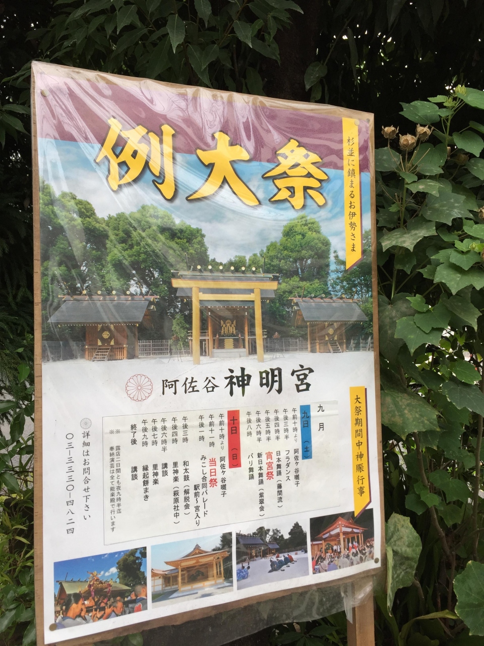 阿佐ヶ谷神明宮の例大祭だそうです。駅前にやぐらが組まれていたので、盆踊りも行われるのかな?