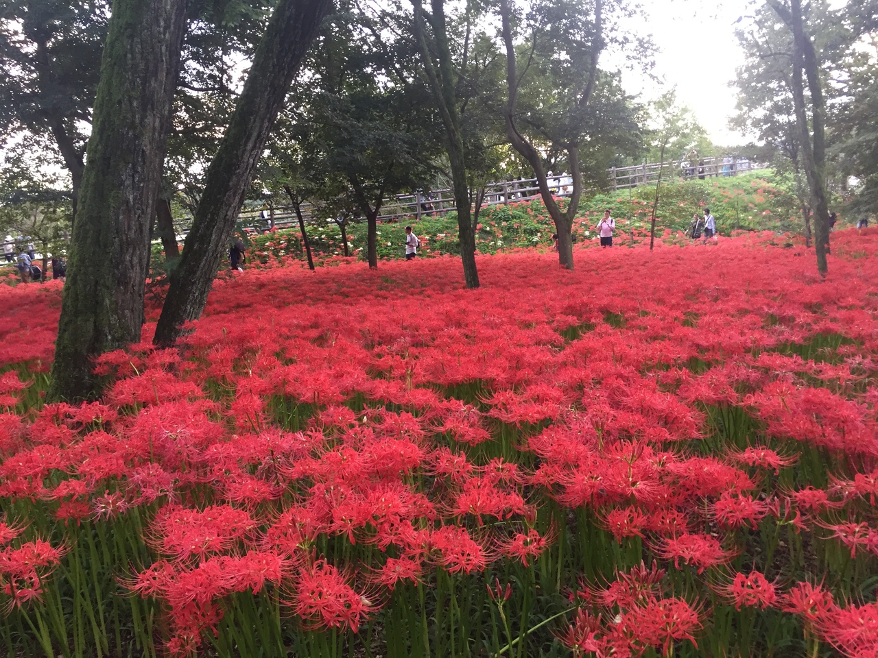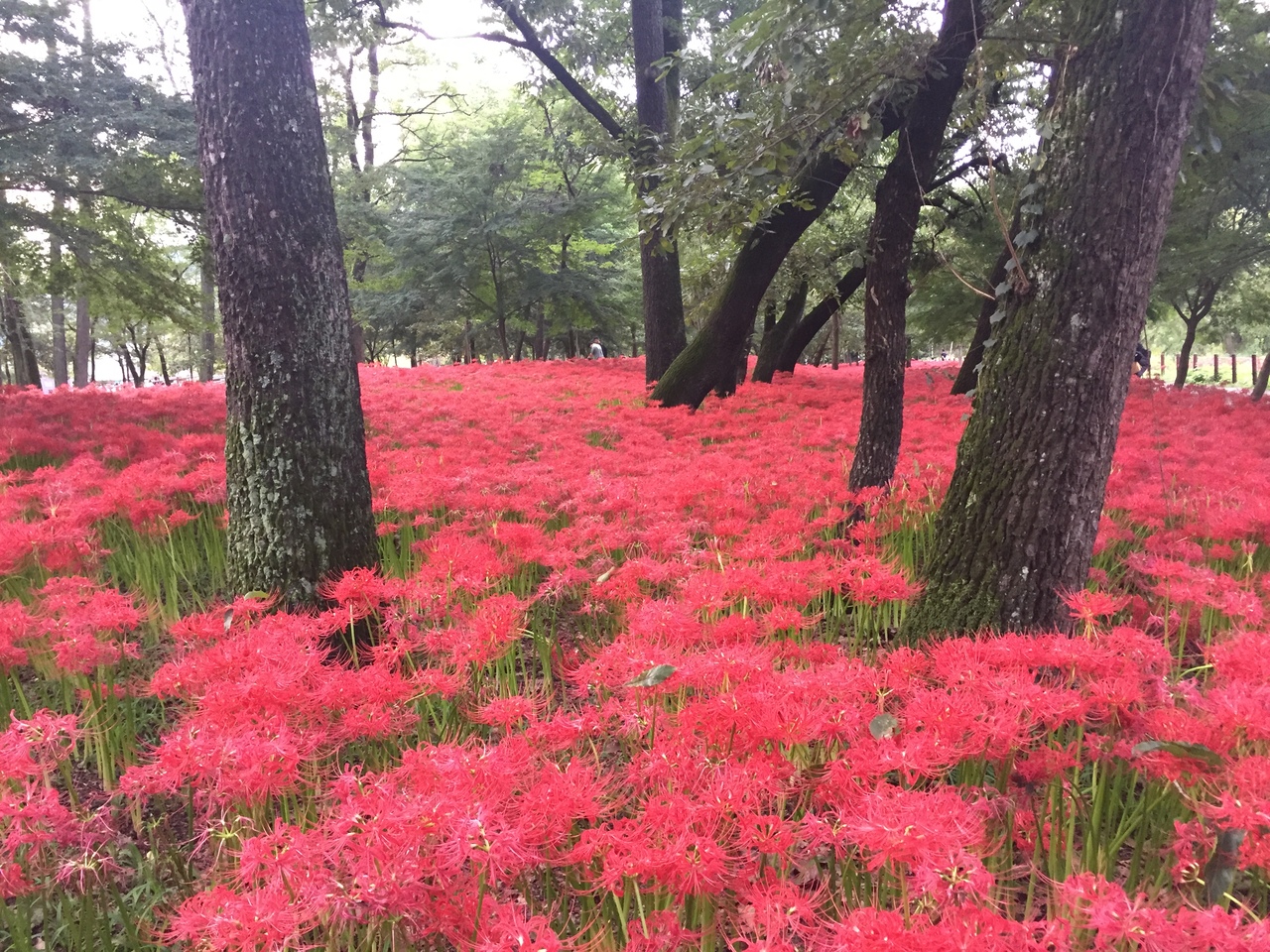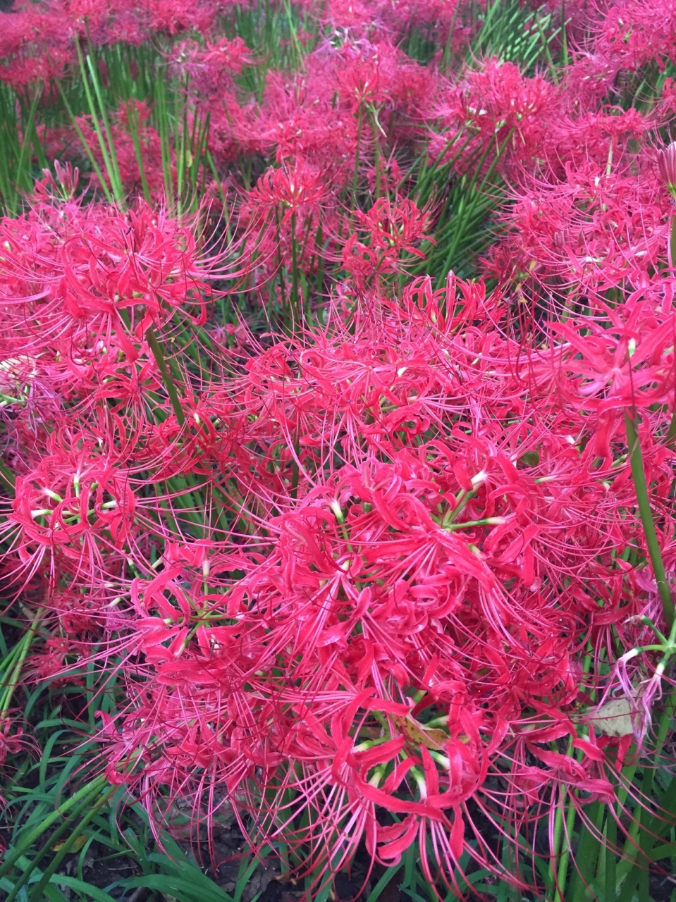 公式HPでは 上流 見頃過ぎ 中流下流は見頃 の表示だったが 確かに遠目は赤い絨毯だが 近くで見ると花そのものは だいぶ傷んでいた。