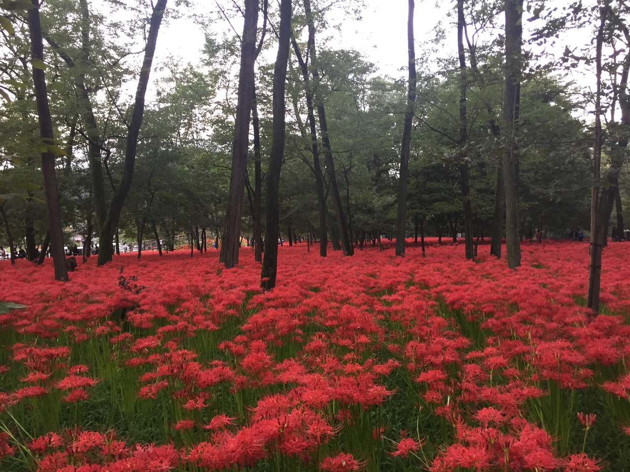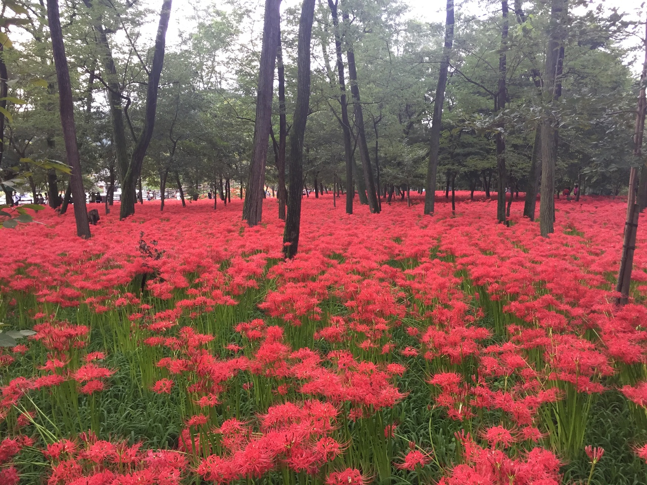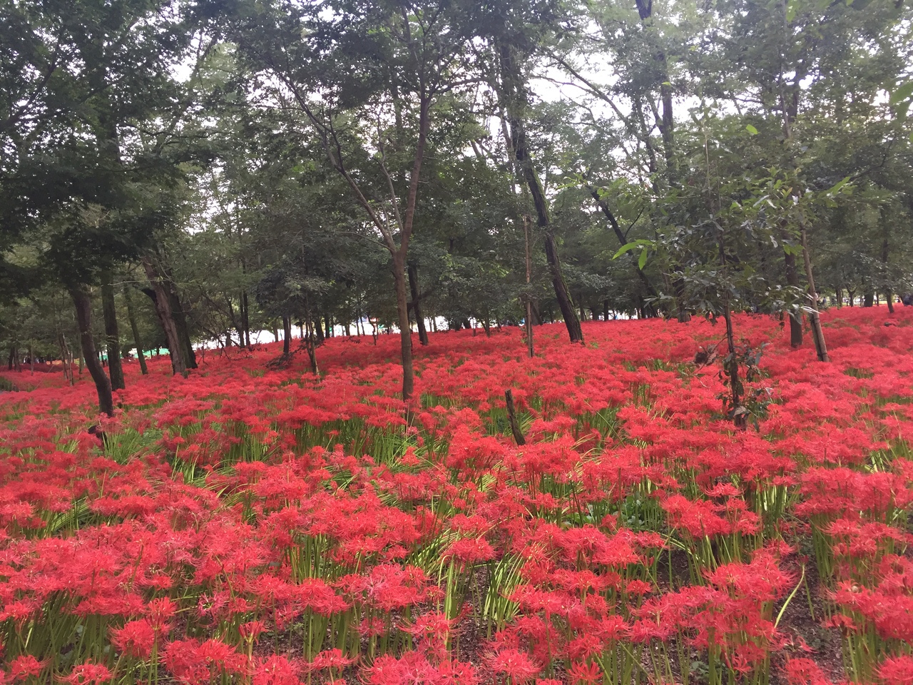 公式HPでは 上流 見頃過ぎ 中流下流は見頃 の表示だったが 確かに遠目は赤い絨毯だが 近くで見ると花そのものは だいぶ傷んでいた。