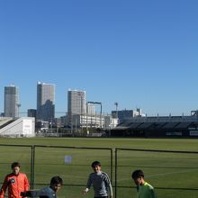 サッカーやフットサル向けの芝コートが綺麗に配置されており、眺めも良く、のびのびスポーツが楽しめる最高の環境になっていました。