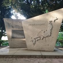 芝公園の一角にある丸山古墳を登っていくと、一番上に石碑がありました。登るというほどの高さがあるわけではありませんが、江戸時代に伊能忠敬が丸山古墳の斜面を利用して測量を実験していたということです。それを記念して建立された碑です。