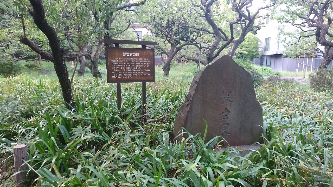 芝公園にある芝丸山古墳を下りたところに梅林がありました。これは、もともと新宿角筈にあって江戸時代から銀世界と称せられていた梅林を、明治41~42年ごろ芝公園に移植したものだそうです。元来17号地グランドの西にありましたが、道路拡張に伴い、昭和41年に現在地に移されました。梅の季節には見事な景色が見れそうです。