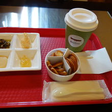 ビスケット&ディップのセット350円がお勧めです。ちょっとした休憩なら、ドリンクは個々にして、スナックとして2人で1セットをシェアするのが良いかと・・。自分らは100円追加して、更にシガーフライをお替わりしちゃいました。この100円追加とかって感じも楽しいです。