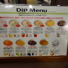 てか、ディップはそれぞれ個性が有るので、色々試したくなりますよ。自分らは(桃とブドウが苦手なので)、具だくさんのオリーブオイル、バナナジャム、オレンジクリーム、手作りりんごバターを選びました。