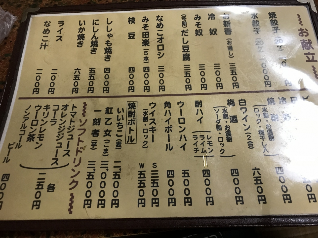 値段はそれぞれ¥1000と安い。焼きはやや水分が抜けていていまひとつであったが、水餃子は満足できた。今度は駅前の照井に行ってみたい