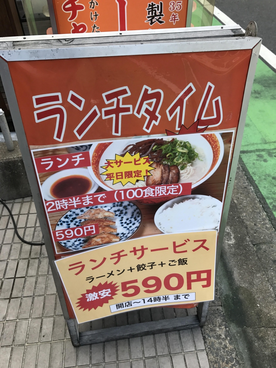 渡辺通の裏通りで、激安ランチを提供する豚骨ラーメン屋さん。