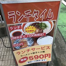 こちらはなんといってもランチタイムはラーメン・ライス・餃子がセットでなんと590円。行列ができるのも納得です。