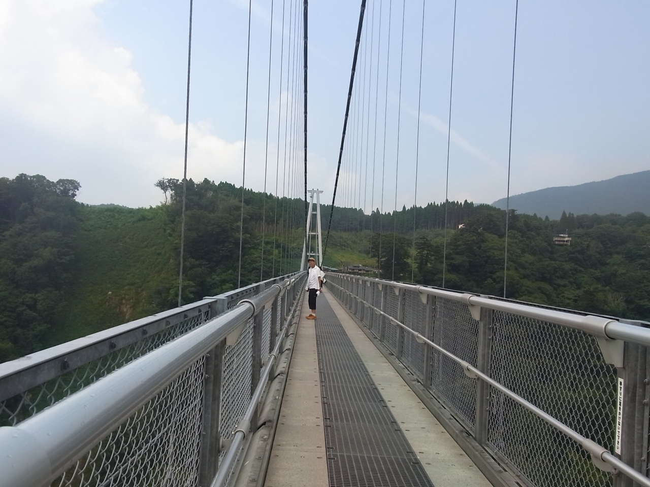 高さ777mという数字もさることながら、橋の上からは日本の滝百選に選ばれた震動の滝の雄滝や雌滝が見え、ユニークな観光つり橋です。
