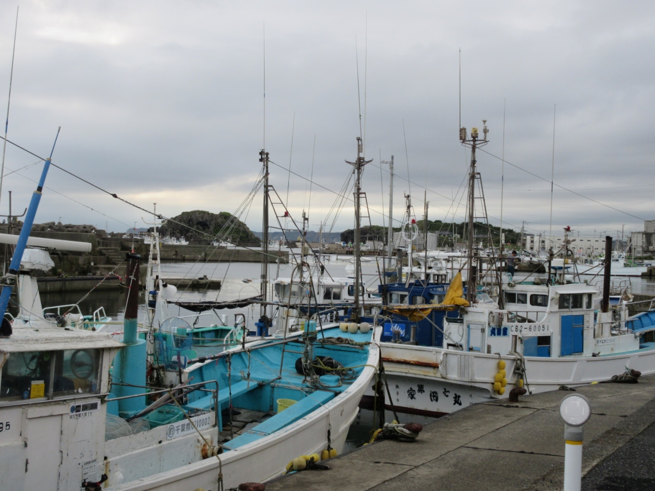 夕日がきれいということで夕刻に向かいましたが、生憎の曇天のためみることは叶いませんでした。漁港沿いには食堂らしいお店も並んでいたので、早い時間ならば新鮮なお魚が頂けるのかもしれません。(夕方なのでほぼ閉まっていました)