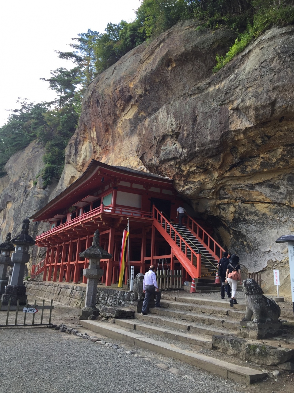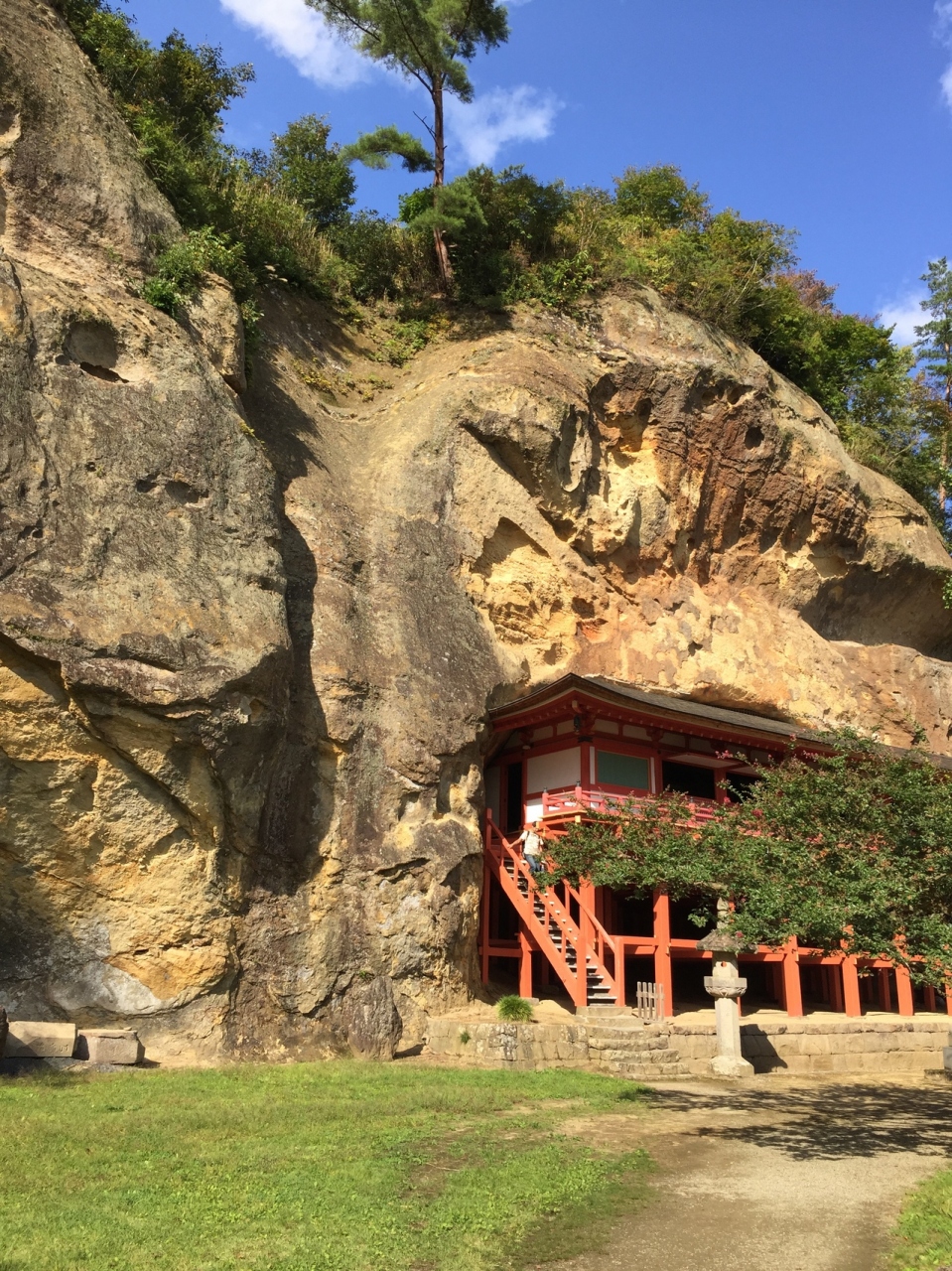 坂上田村麿が創建したというお堂。この岩はえぐれていたのか、人が削ったのか??不思議な建物。中にはたくさんの毘沙門天が安置されていました。