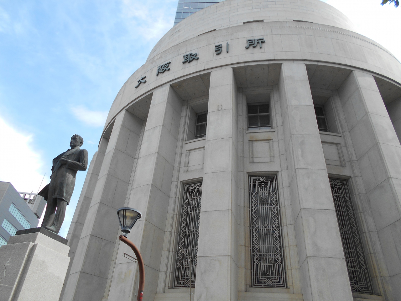 もよりは北浜駅です。大きな通り沿いにありわかりやすいです。玄関は楕円形でアールデコ調です。正面に五代友厚像が立っています。建物の中は誰でも入れるところもあります。飲食店もいくつか入っていて利用できます。5階に見学ギャラリーがあります。