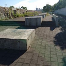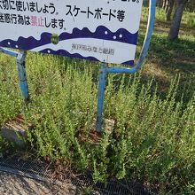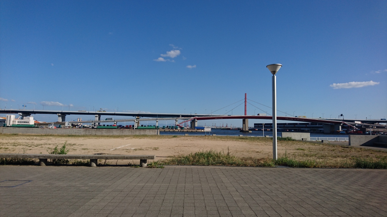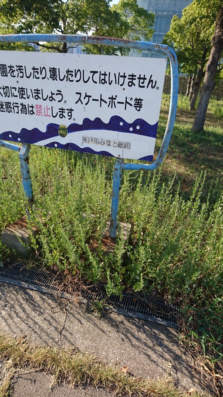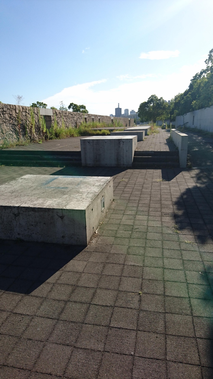 海沿いは広い遊歩道になっていて人もそれなりにいますが、そこから一歩入ると、スペースをコンクリートで囲ったりして雑草が生えて残念な状態。夏とはいえ、皆が通らないから雑草も生えるわけで、正直、公園というには使う人を無視して作ったような印象でした。