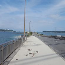 古宇利大橋と比べて海の中を走っている感はなぜかあまりありません。(知らない人は陸続きだと思うかも)もしかしたら道幅がもう少し狭かったら雰囲気出るのに、と思う。でも風を切って走るのは気持ちいいのでよしとする。無料なのも地味にいいんねえ。