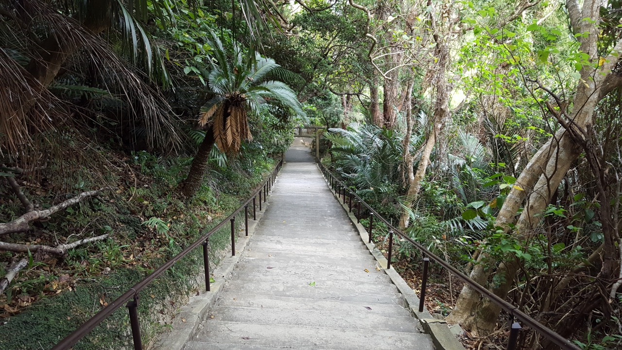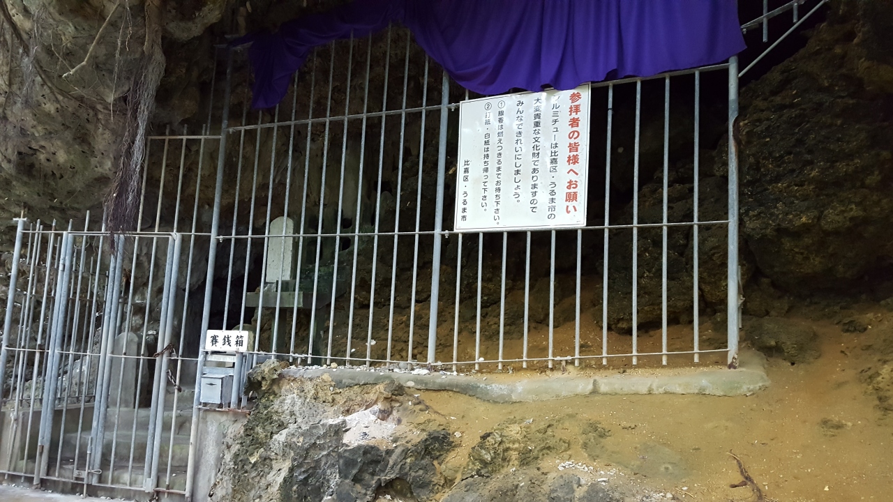浜比嘉島に残る開闢の女神アマミキヨと男神シネリキヨに関連する遺跡。アマミチューが海の遺跡だとするとこちらはさしずめ山の遺跡といった感じで、山の中腹にある。沖縄には似つかわしくない鳥居があり、さながら異世界への入り口か、といった静謐感が漂う。