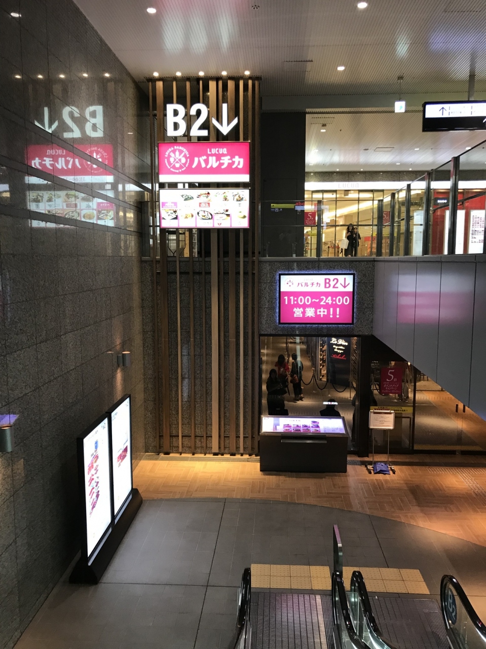 ルクア1100の地下にいくつかのバルが集まったエリアがあり、そこの1角にある店。肉中心の料理で他も串の様な物が数種類ある。酒の種類は豊富ではないが、ワインを中心に結構あり。肉は注文したのが、よくないのか、やや硬めで食べずらかった印象