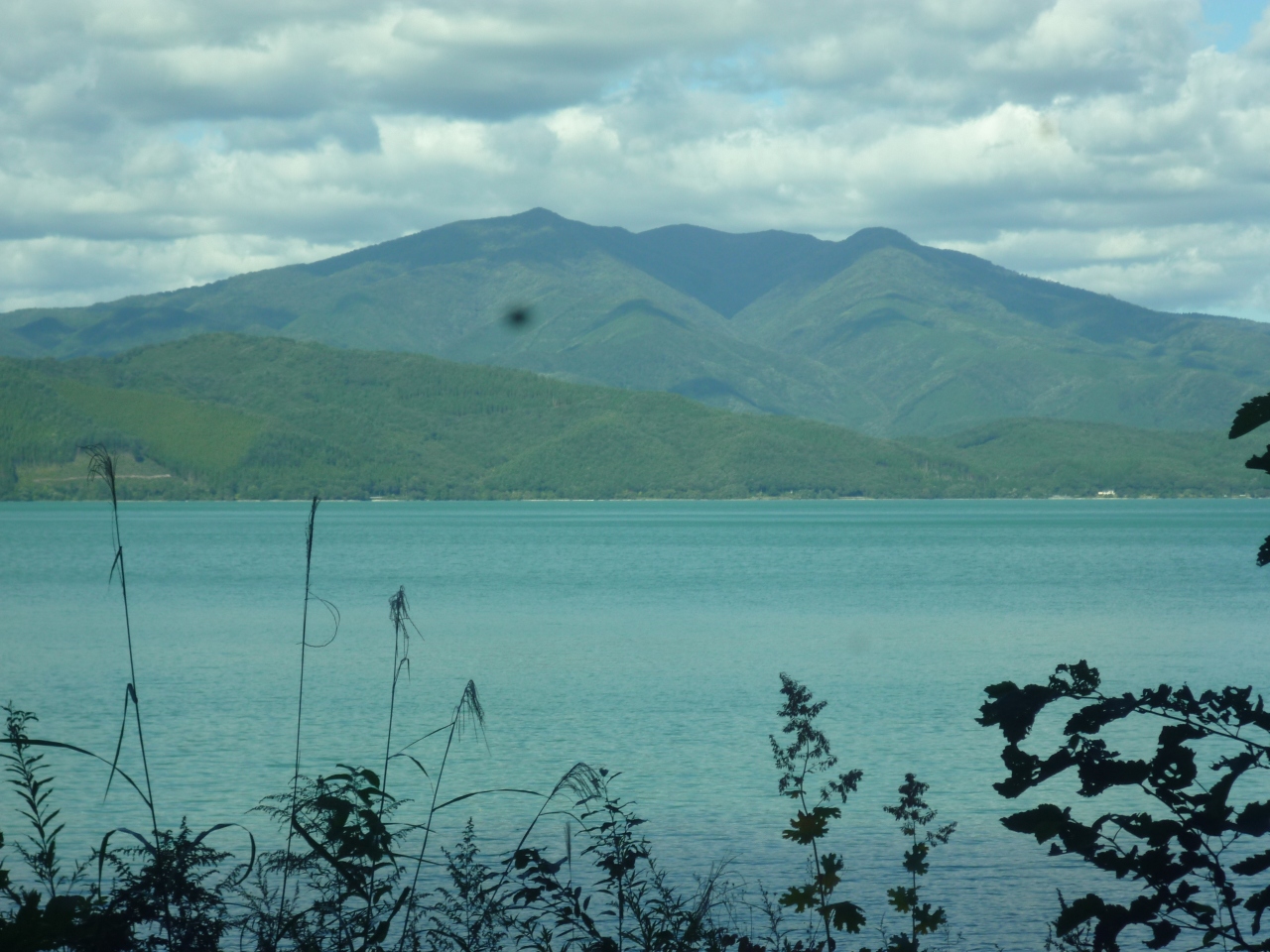 田沢湖周遊道路からは、田沢湖越しに雄大な姿が見えました。遊覧船に乗って後方デッキに出ると、ずっと山が見えてその姿は美しかったです。田沢湖高原のホテルに泊まると、部屋の窓から正面に山が見えて夕日に染まって輝いていました。