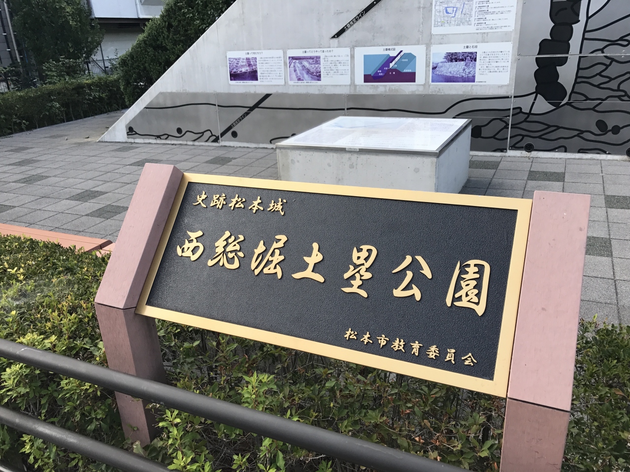 松本城の西側、住宅街の中にある公園です。ここでは松本城の防御施設であった土塁が復元されて整備されていました。ただ、観光客の姿はなくひっそりとしていました。土塁は市民がずっと大切に守ってきたそうです。城周辺ではほとんどが埋め立てられて遺構が少ない中、かつての松本城の姿がわかる貴重な場所だと思います。