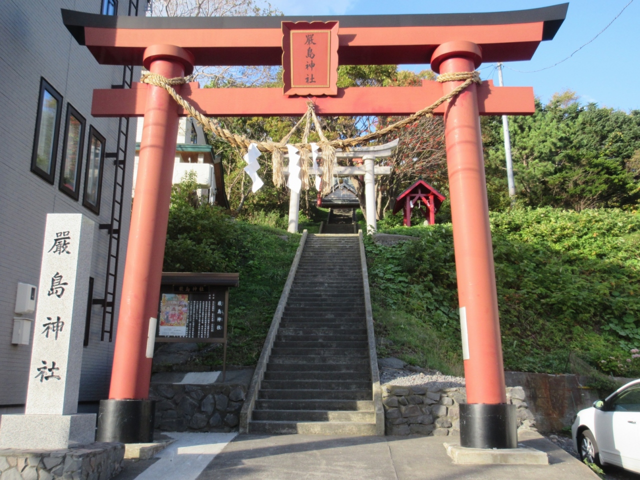 朱塗りの鳥居と、その先に石段があるのでお参りしました。