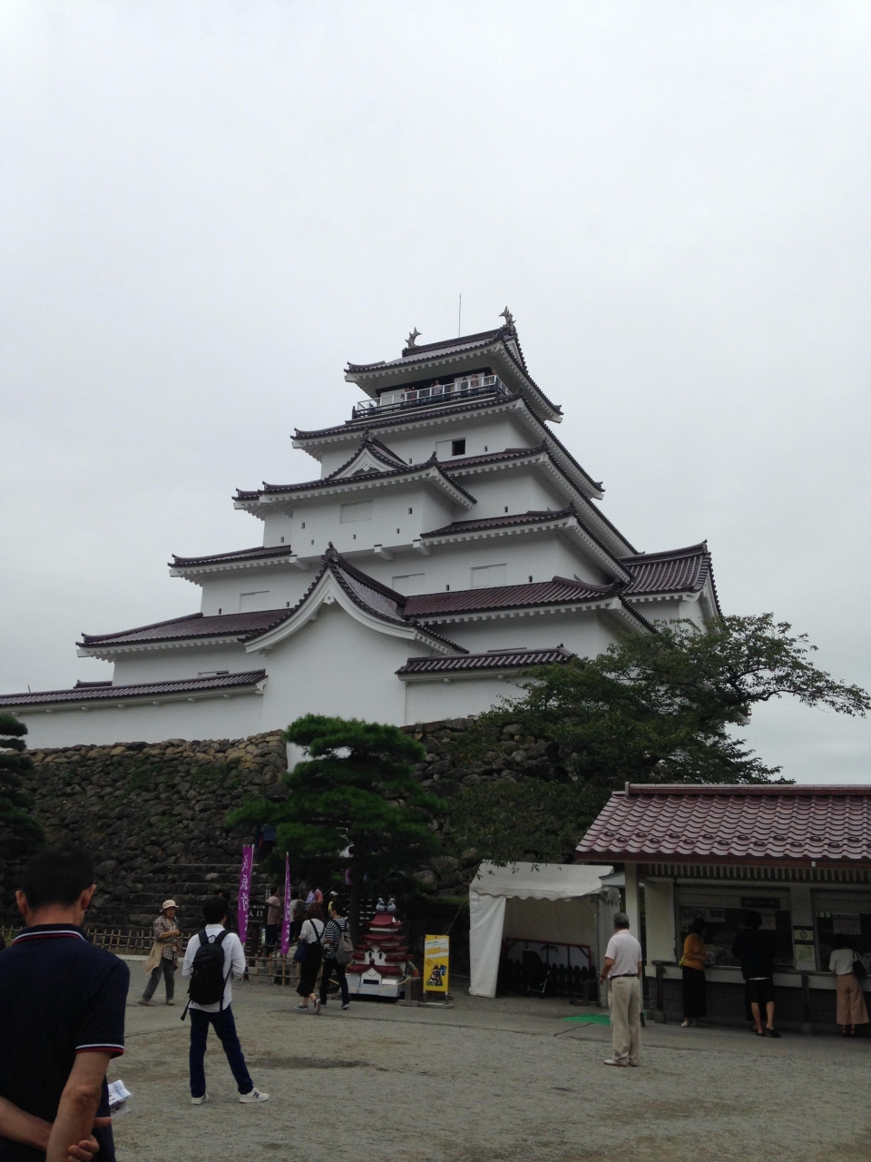 エレベータはなく天守閣まで階段を上って疲れましたが上からの景色はすばらしかったです。会津米がレストランやお土産屋さんで見ましたが天守閣から見ると遠方一面がイネで黄金色でした。各階見どころがあります(会津武家屋敷と展示内容が重複しているのもありますが)。西郷頼母の写真を初めてみたら伊藤博文をやさしくした感じでした。会津時代劇で役をやっていた北大路欣也や西田敏行などのがっしりしたイメージを持っていたので驚きました。