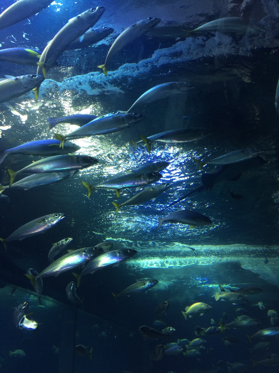 熱帯魚から始まって淡水魚やマグロみたいな魚の群れ、そして海中トンネルの幻想的なこと。