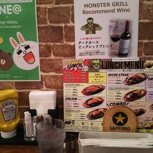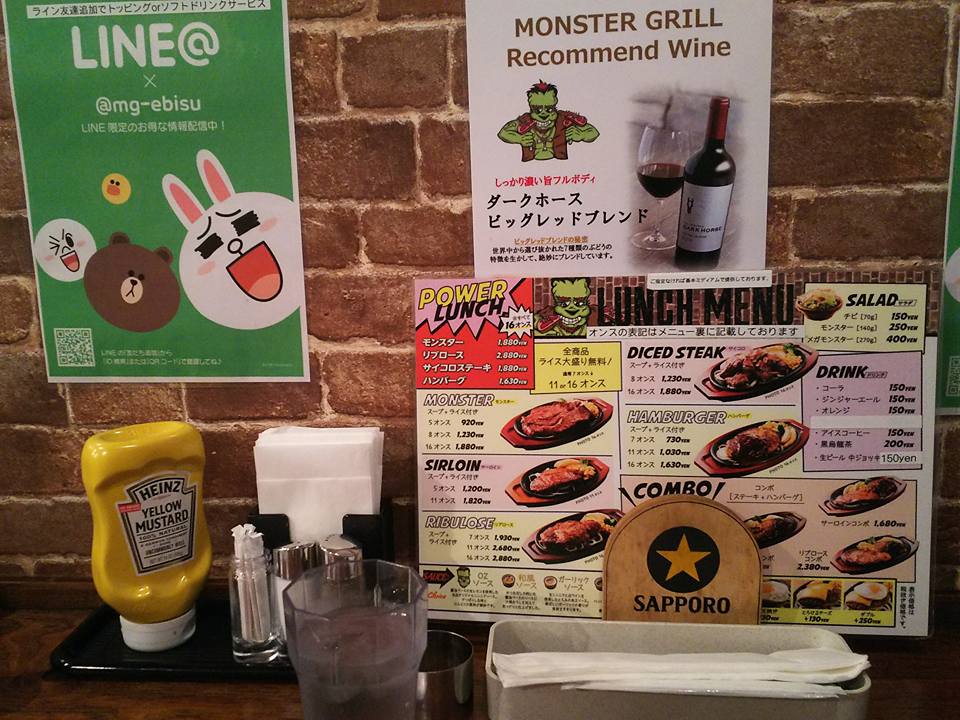 なかなか噛み切れないステーキでしたが、値段からしたらこんなもの、と割り切れるレベル。サラダはセットになっていないので単品で注文します。モンスターサラダは結構大き目でした。肉の重量の表示がなぜオンスなのか分かりませんが、日本なのでグラムにしてくれた方が親切です。