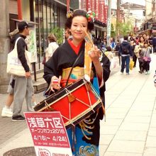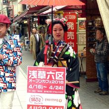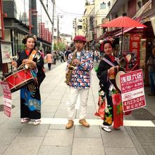 私が訪ねた日には浅草六区通りで、浅草ちんどん屋さんが浅草六区オープンカフェのPRをしていました。