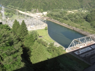 新潟側から県境トンネルを超え只見へ抜けると、このルートの目玉、田子倉ダムがあります。遊覧船や売店があり観光拠点にもなっているので休憩して愉しみましょう。湖だけでなく下を見下ろすと、発電の送電設備と只見の町へ通ずる流れが見えます。下から見ると巨大な壁となって行く手を遮っているように見え、ちょっとビックリ。