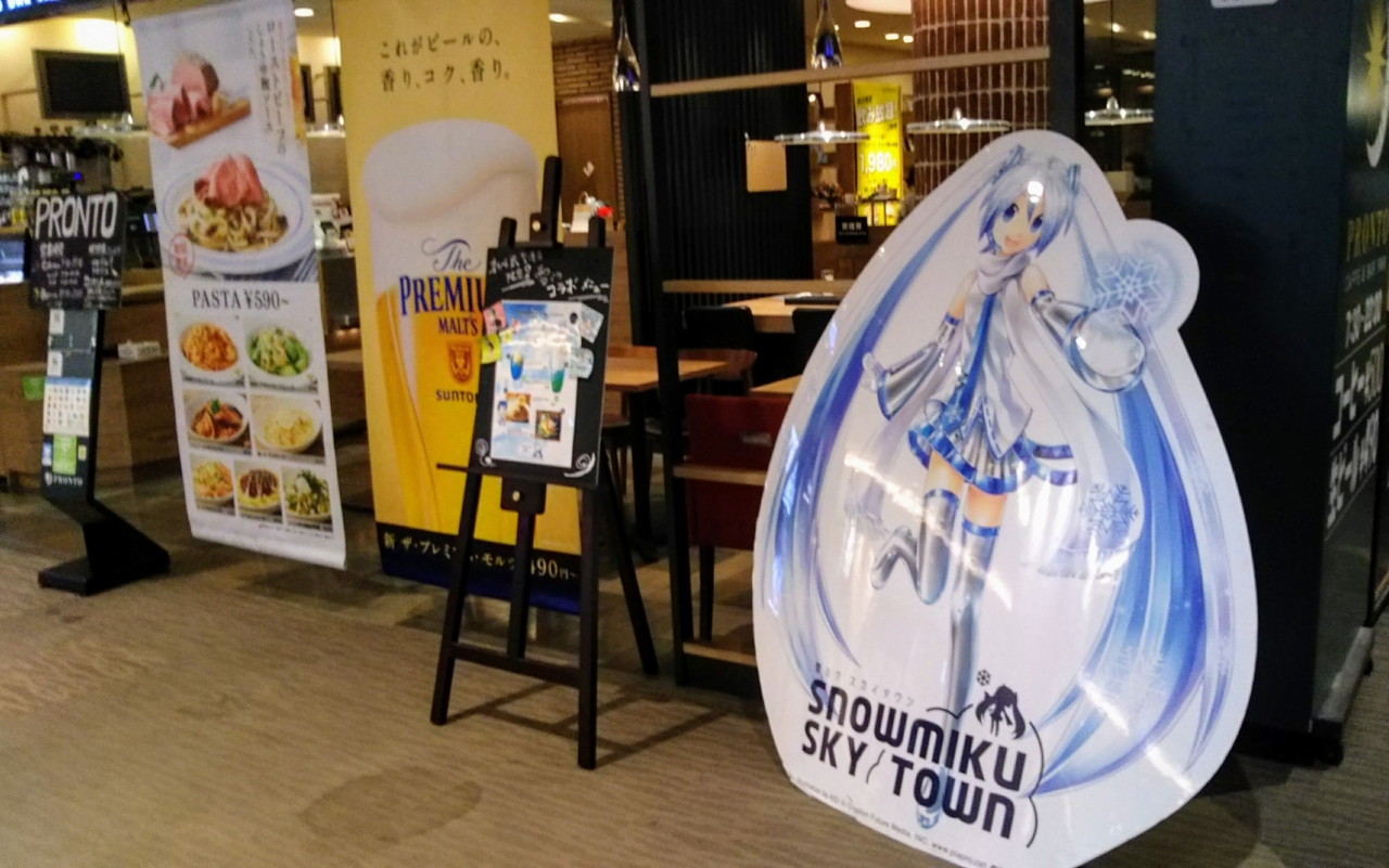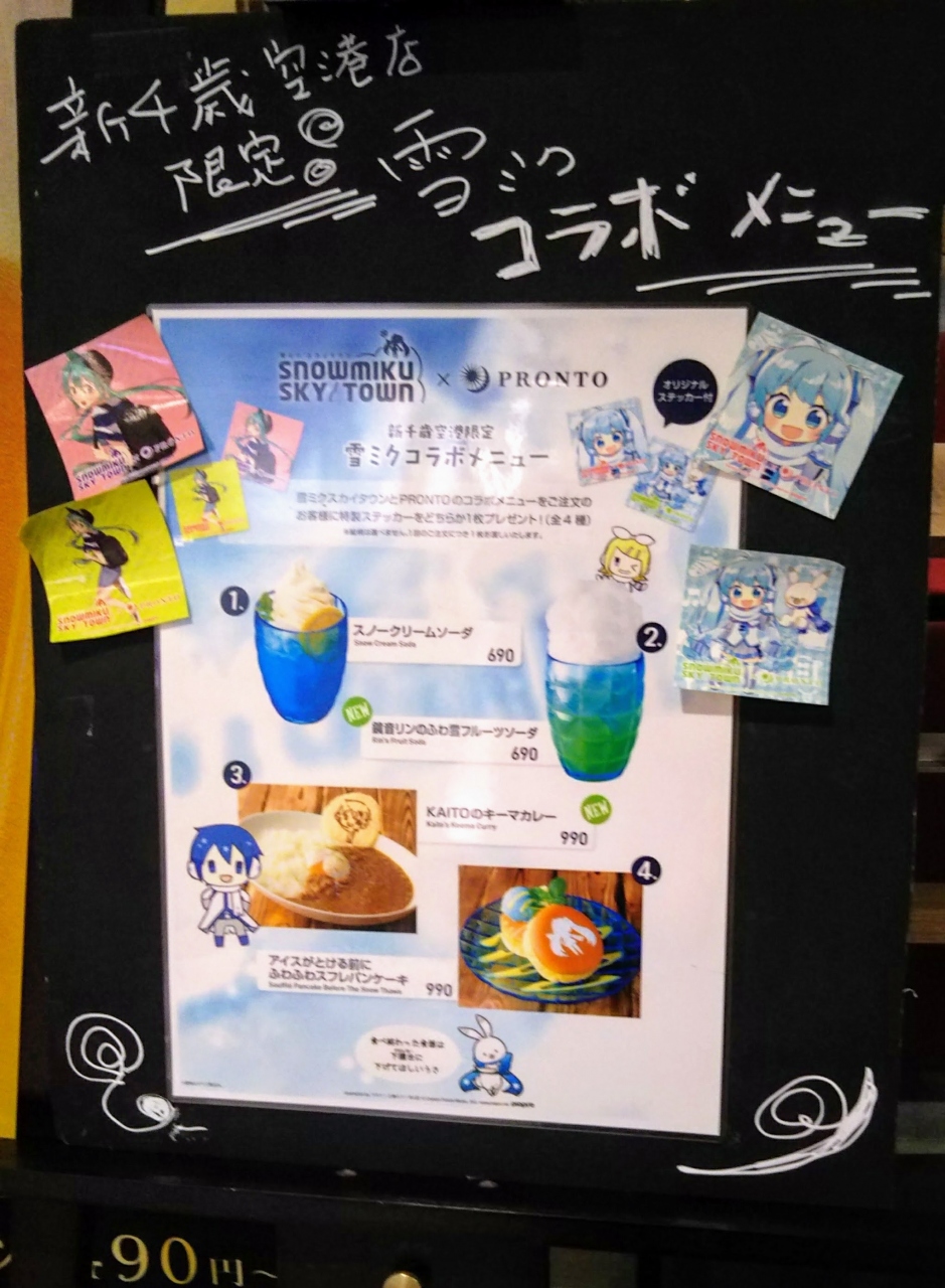 新千歳空港国内線ターミナルビル4階にある「プロント」には冬の北海道を応援するキャラクター雪ミク(初音ミク)とのコラボメニューがありました。