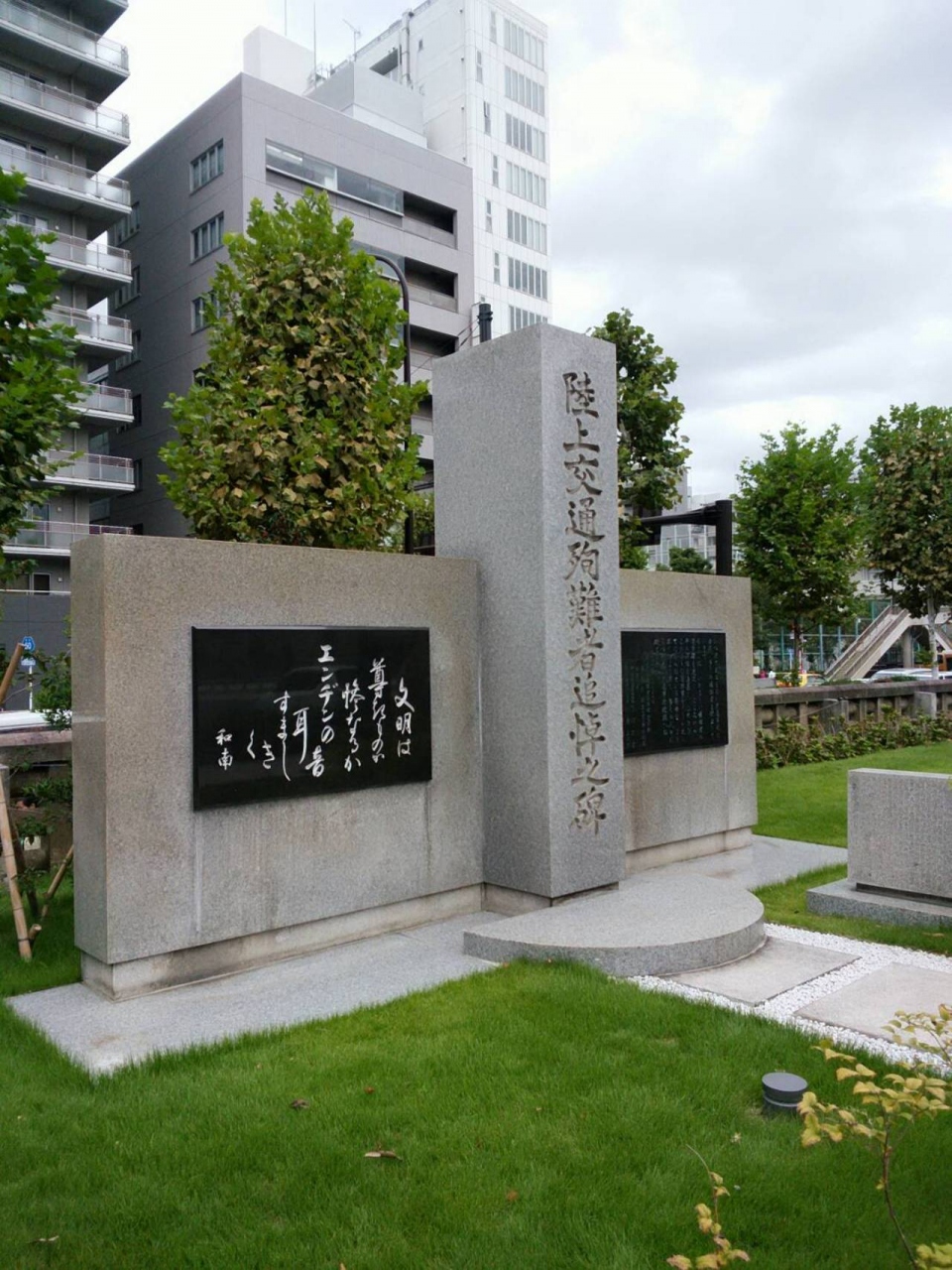 築地本願寺の境内には、様々な石碑などがありますが、その中でもいちばん大きな石碑が陸上交通殉難者追悼之碑です。交通事故で亡くなった方たちを追悼する石碑を見ると改めて安全運転をすることを思い知らされました。今更ながら、交通安全を祈願しました。