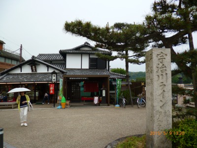 平等院と宇治の甘味処を目当てに宇治を散策。橋の中央から宇治川の上流を見ると護岸工事をしていました。川幅が広いので流れは速いように感じませんでしたがかなりの推量だと思います。いったん長雨が続くと激しい流れに変わる印象を持ちました。