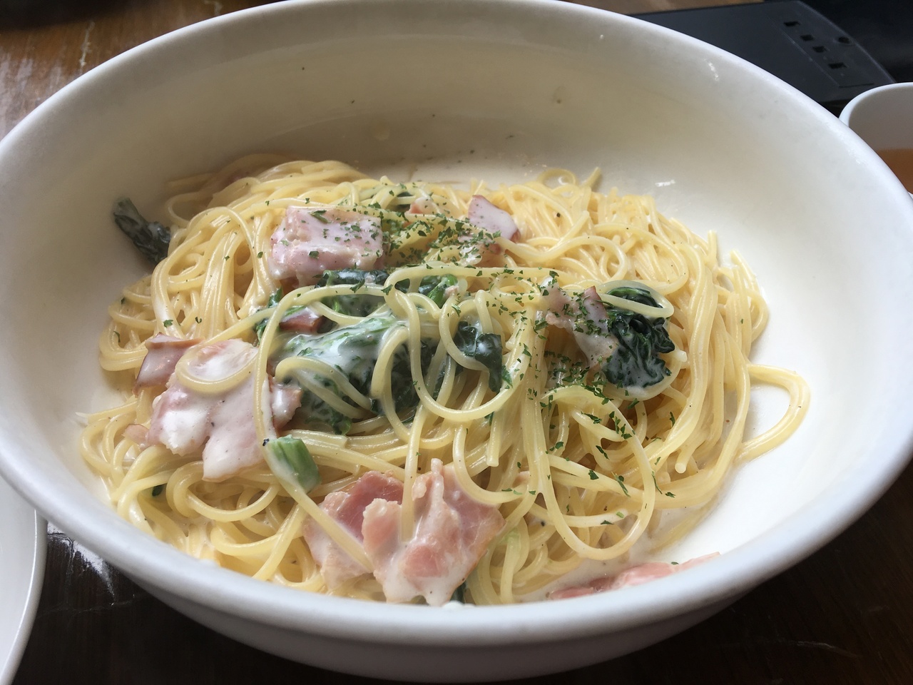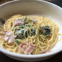 細麺でボリュームが多いお店です。取引先との商談の前ランチに利用しました。天王洲アイルから歩いて5分ほどの距離です。回転率を上げるためか細めのパスタを使っておりますが、ちゃんとアルデンテでソースとの絡みもよかったです。ランチタイムのボリュームの多いパスタがオススメです。