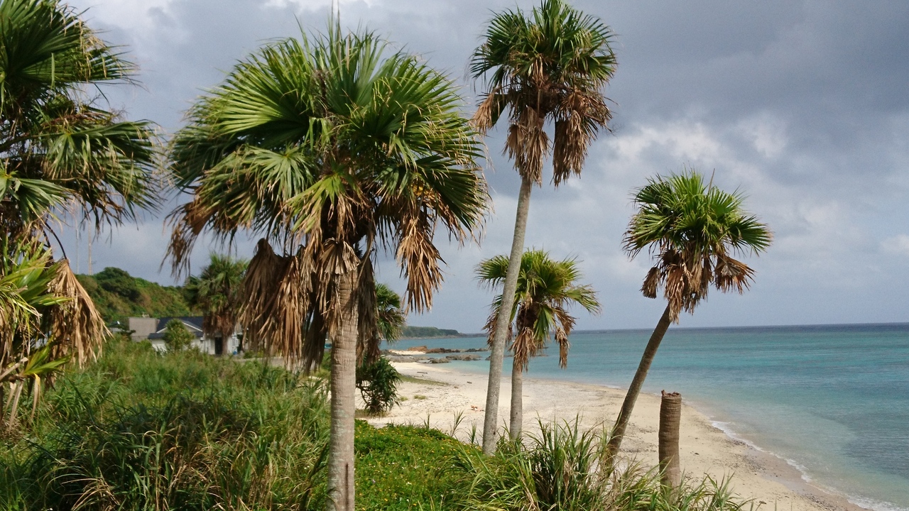 用安海岸の人気のリゾート施設「ばしゃ山村」に隣接している、ばしゃ山海水浴場はエメラルドグリーンのキレイな海が続いていてヤシやアダンも植えられ雰囲気がいい。レストランも並んでいて泳がなくてもビーチ気分が味わえるいい場所です。