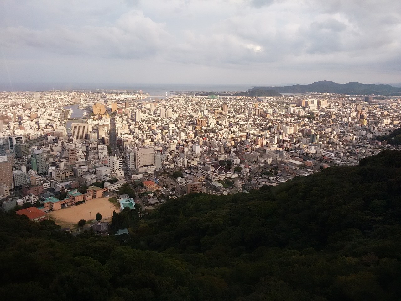阿波おどり会館の2階で阿波おどりを見物した後、5階のロープウェイでに眉山へ行きました。どこから見ても眉のような山に見えるところから”眉山”の名称が付いたそうです。頂上からは徳島の街並みや大河の吉野川が見えて、夜景も綺麗でした。