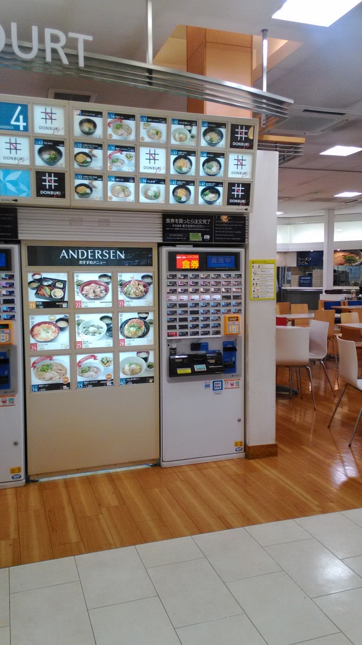 山陽自動車道沿いにある小谷サービスエリアの上り線にあるフードコートです。食券を先に購入してそれぞれの窓口に出すスタイルで席数もたくさんあります。丼物や麺類などがたくさんありました。このお店はパン屋のアンデルセンが経営しているようです。