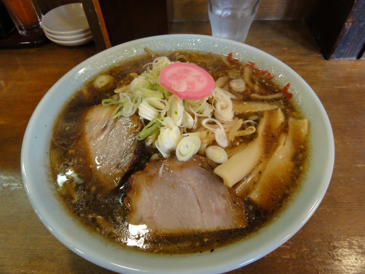 市電すすきの停留場から見えたラーメン屋さんです。とにかくラーメンが食べたいと入りました。店内はカウンターのみで8席でした。外観では味噌ラーメンが有名なようでしたが醤油もあったので食べてみました。チャーシューも柔らかで美味、醤油ラーメンには珍しくもやしが入ってました。