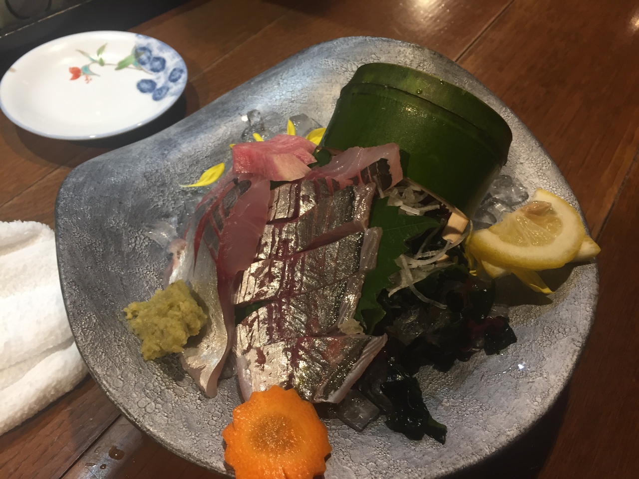 土曜日の夜9時過ぎに行ったら、5分くらいで席を用意してくれました。しかし、白いか、金目鯛の刺身は売り切れでした。アジの刺身は鮮度が良く、油ものっていて美味しかったです。とろはたの塩焼き、普通のハタハタより脂がのっていた魚でした。他に生ビールと土瓶蒸しをオーダーして3100円くらいで、値段もリーズナブルでした。