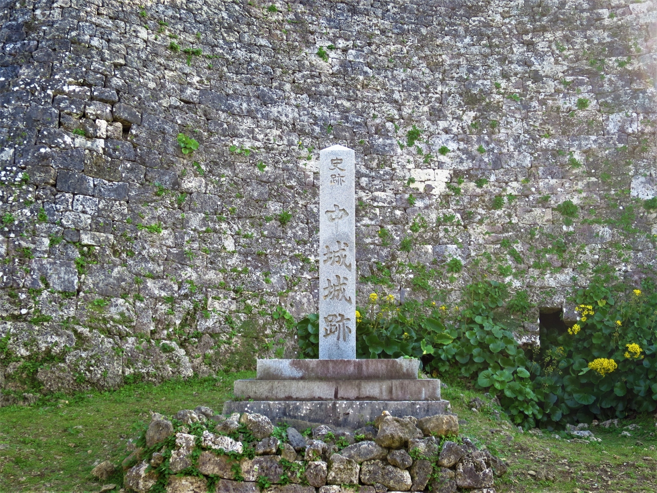 東西に細長く伸びた縄張りが特徴の城跡で、他のグスクと異なり、切り立った崖が天然の要害となっており、防衛設備として充分に機能していたことが伺えます。そのため、最上部からの景色は、城の周辺の地形の変化を存分に観察することが出来ます。冬になると城内に咲き乱れるツワブキが鮮やかな黄色が、青い空と緑の草、城壁の灰色に鮮やかさを添えます。夏だけでなく、冬にも訪れても楽しい場所の一つです。