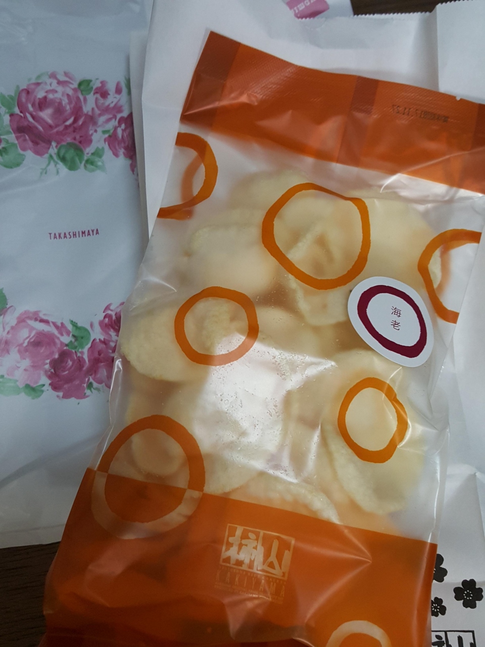 ちょっとおしゃれなお煎餅で自宅用という感じではないのであまり利用したことがなかったのですがたまたま通りがかかると「えびせん」345円というポップが目に入りました^^;